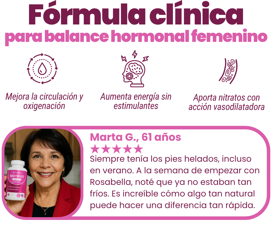 Rosabella ayuda a revertir ese daño desde la raíz, mejorando el flujo y oxigenando tu cuerpo de forma natural.
